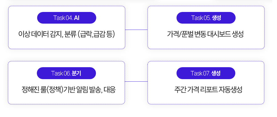- Task 04. AI 이상 데이터 감지: AI가 과거 가격 추이를 학습하여 경쟁사의 기습적인 덤핑(급락)이나 공격적인 프로모션 징후를 실시간으로 분류합니다.