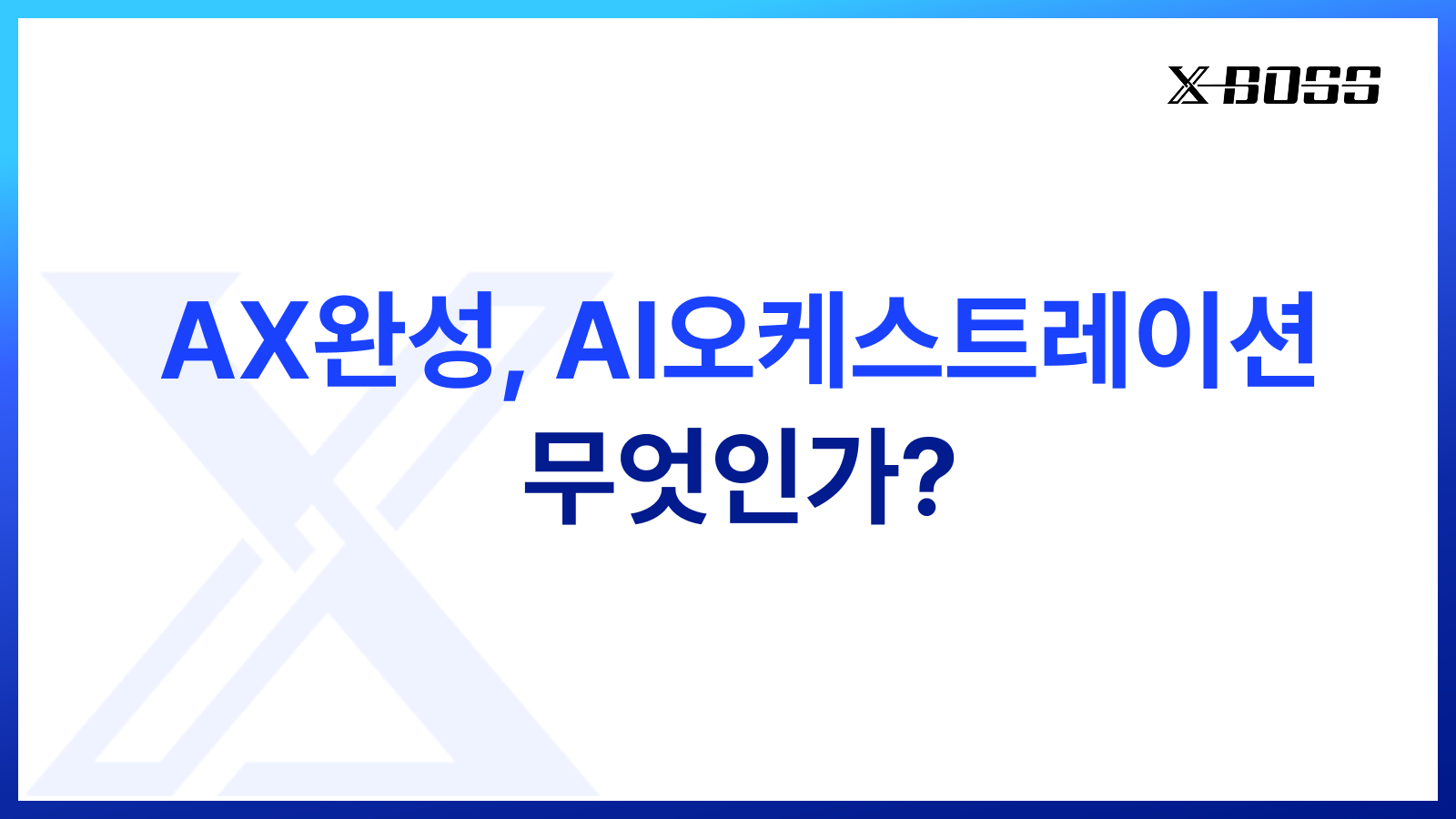AX 도입을 고민하고 계신가요? 혼란스러운 AI 에이전트들의 지휘자가 필요하다면, 지금 바로 엑스보스의 전문가와 상담해 보세요. 우리 기업의 현재 위치를 진단하는 것부터가 혁신의 첫걸음입니다. 엑스보스가 귀사의 AI 여정을 A부터 Z까지 함께하는 든든한 전략 파트너가 되어드리겠습니다.