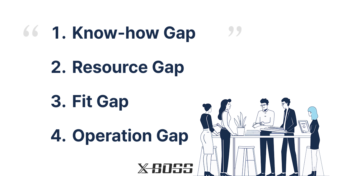 엑스보스가 현장에서 반복적으로 확인하는 실패 구조는 크게 네 가지 “갭(Gap)”으로 정리됩니다.